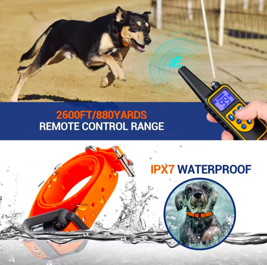 This rechargeable electric training collar helps reduce unwanted barking and improve obedience.