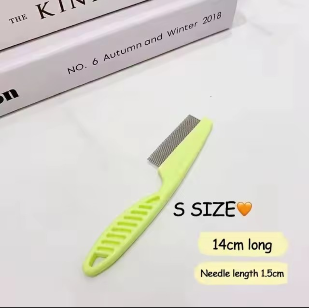 Durable stainless steel grooming comb for removing loose hair, fleas, and dirt. Gentle on skin and suitable for cats and dogs. Ideal for daily grooming and shedding control.