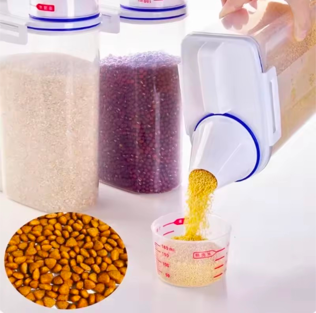 This plastic-sealed storage container is moisture-proof, durable, and available in 1.5kg or 2kg capacity.