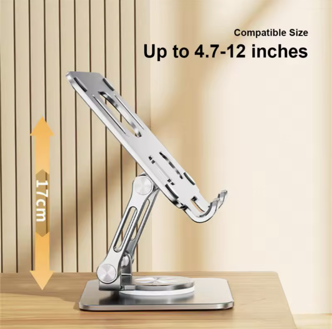 This foldable, multifunctional bracket holds laptops, phones, or tablets with ease. Made from durable aluminum alloy, it features 360° rotation for the perfect viewing angle—ideal for work, video calls, or streaming.