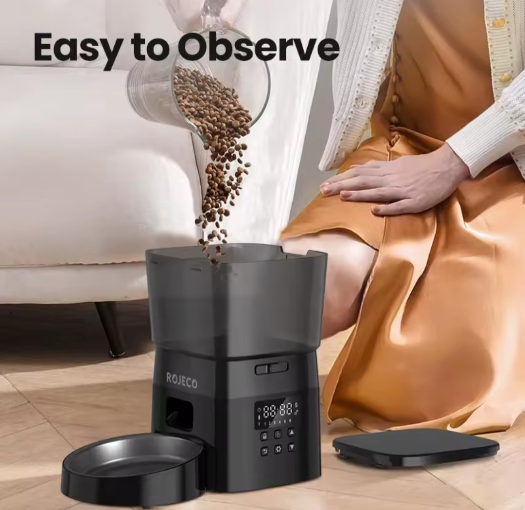 The ROJECO Automatic Pet Feeder (Button Version) makes daily feeding easy and reliable. Designed for cats and dogs, this feeder dispenses dry food with simple one-touch button control, helping you manage portions and feeding schedules effortlessly.
