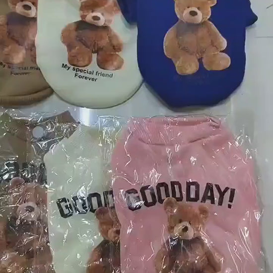 This bear-pattern pet sweatshirt is made with soft, warm fabric to keep dogs and cats cozy in cold weather. Designed for small and medium pets like Chihuahuas. Perfect for daily wear, walks, and cute photos.