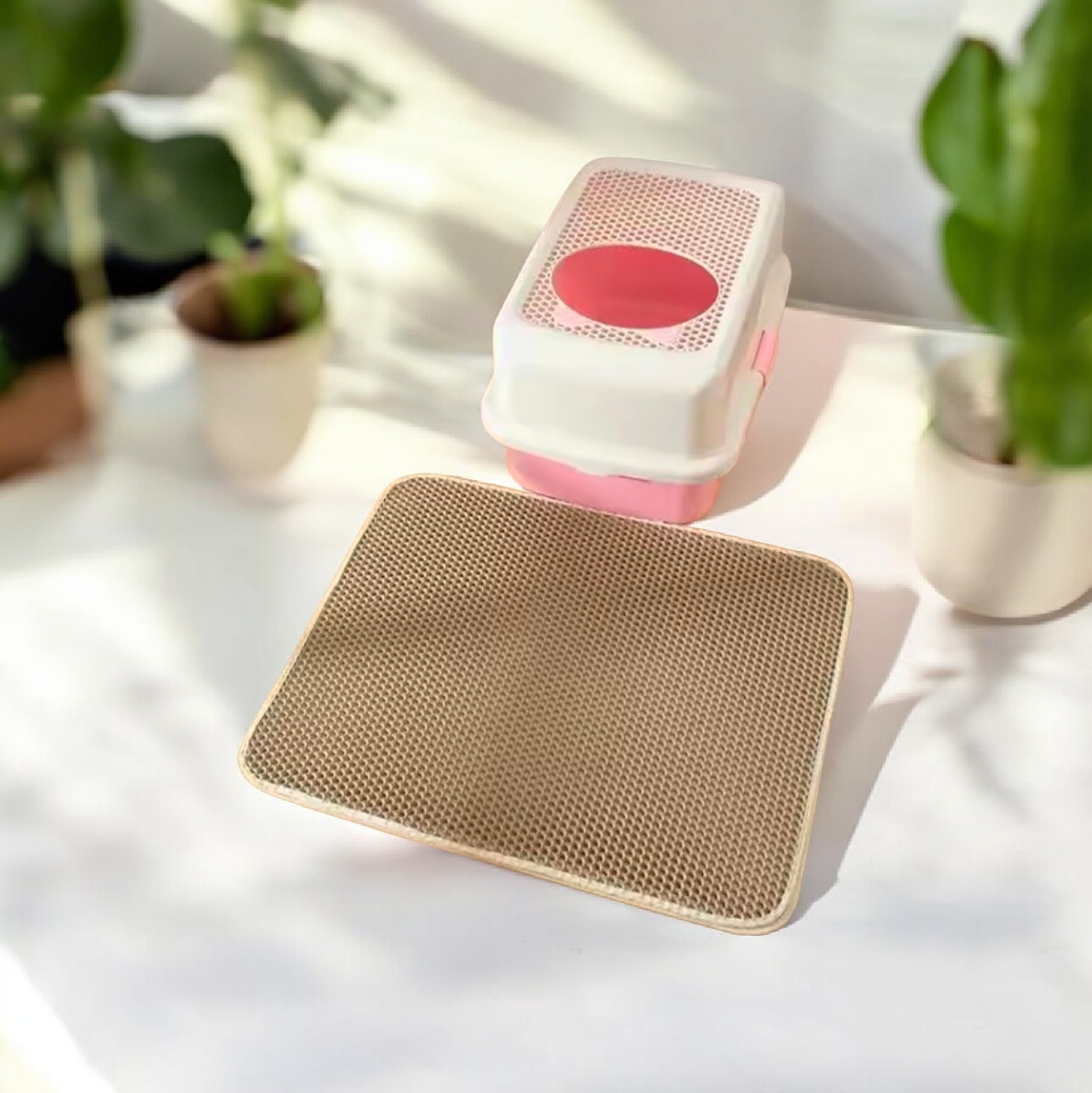This double-layer cat litter mat traps litter effectively and prevents mess around the litter box. The waterproof and non-slip design keeps the mat in place, while the washable material makes cleaning easy. Includes a free gift for added value.