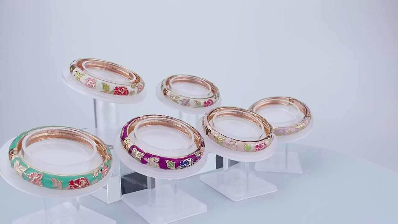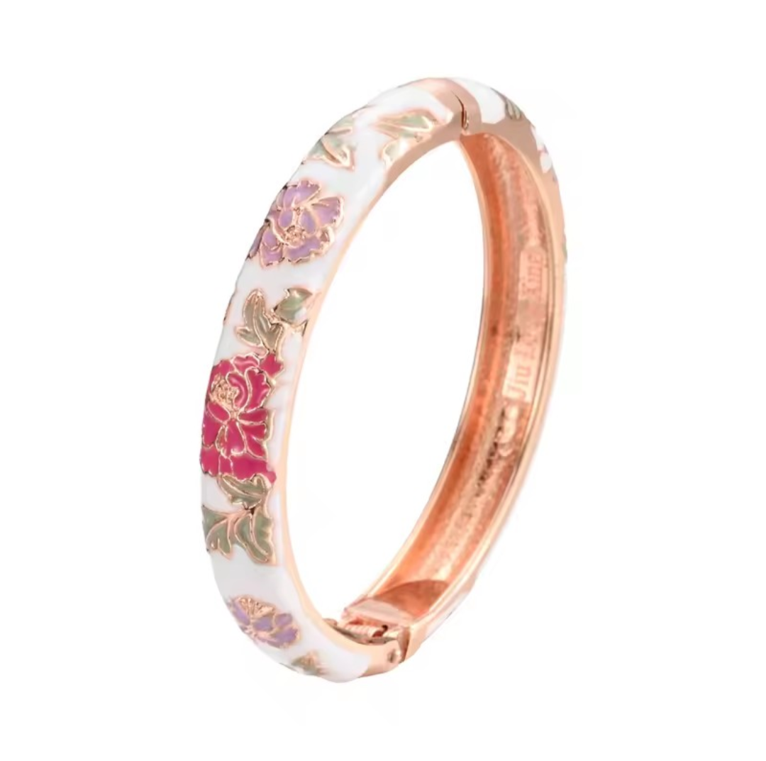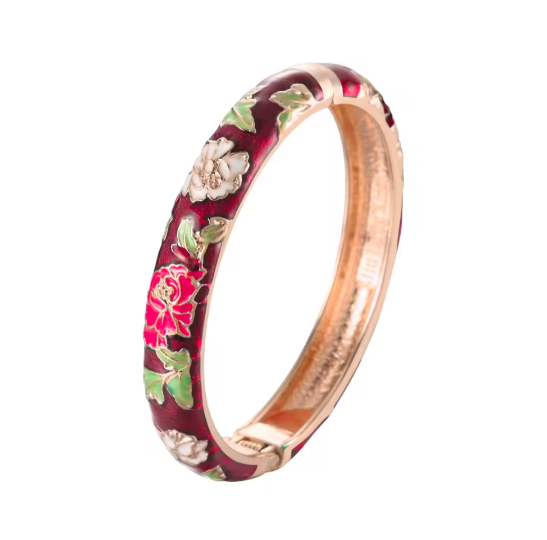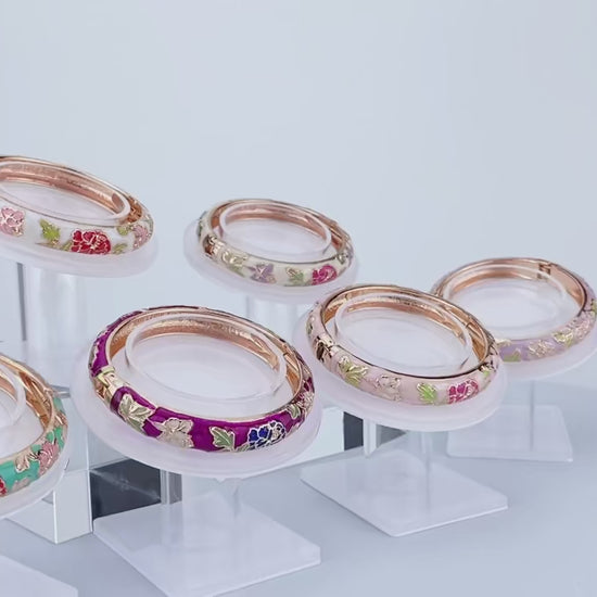 Elegant enameled flower bangle inspired by Indian, African & cultural jewelry styles. Colorful, lightweight, and perfect as a gift.