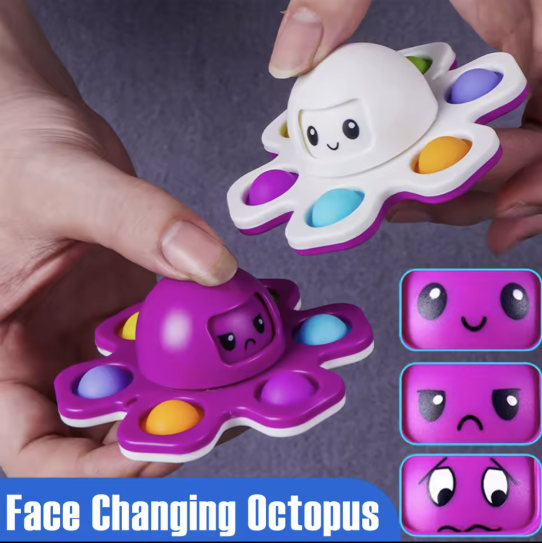 Design: Chic face-change octopus shape + Pressable bubbles + Spinning top, a combination of fun and creativity.