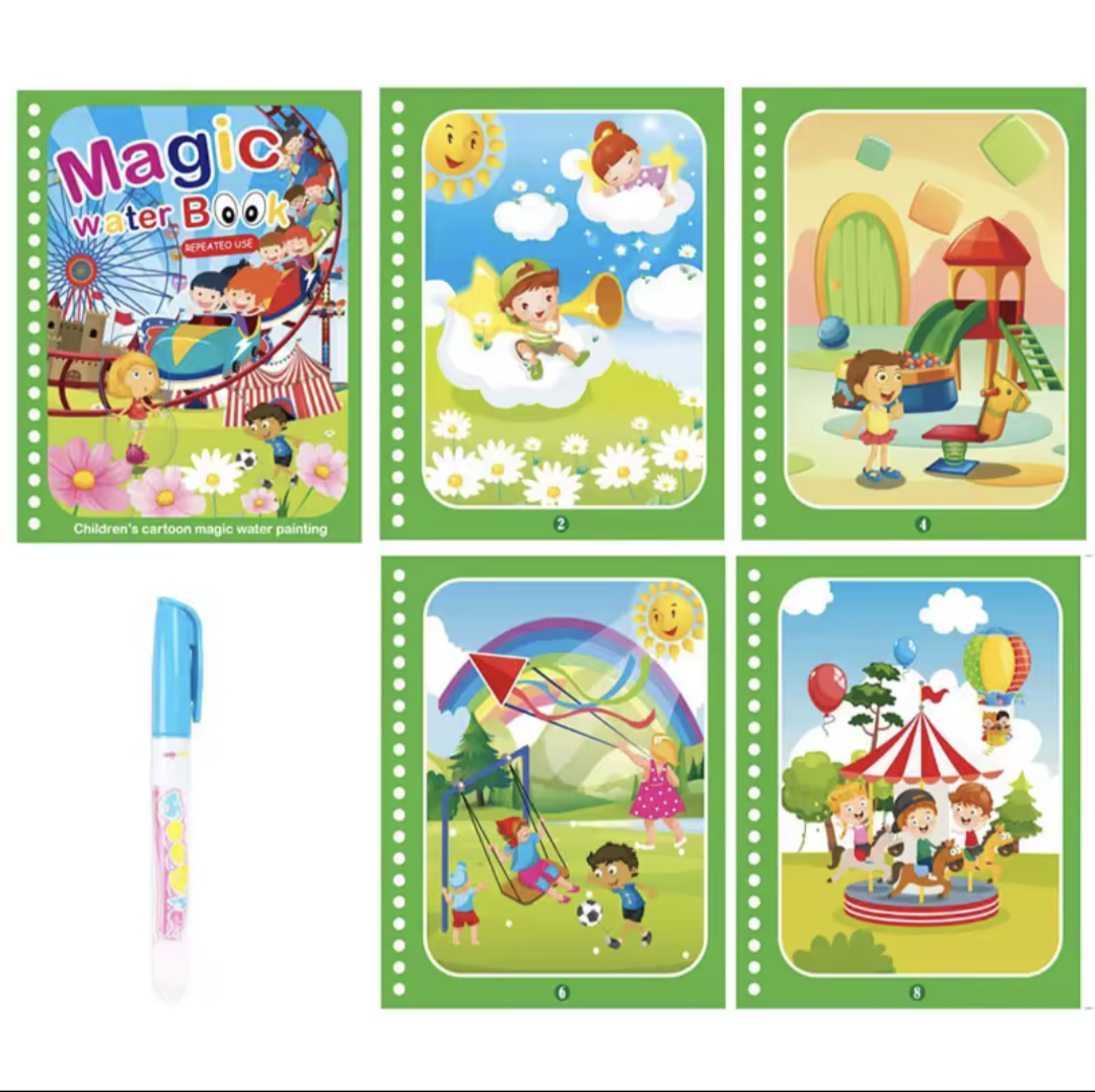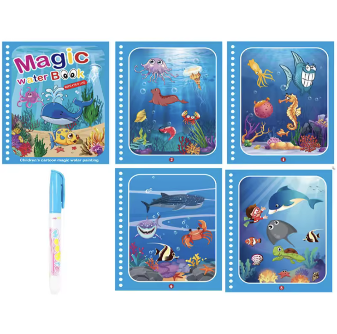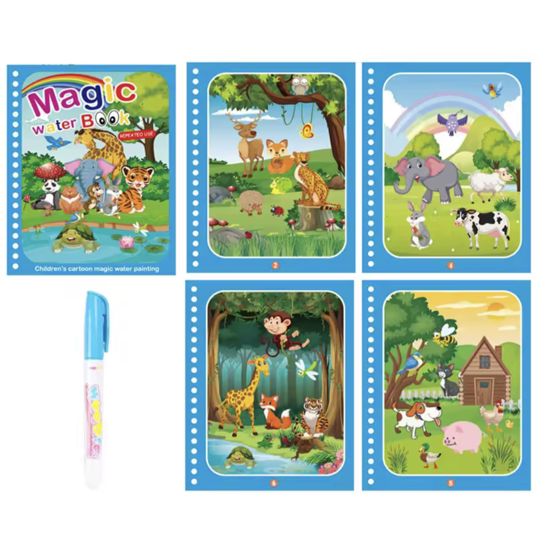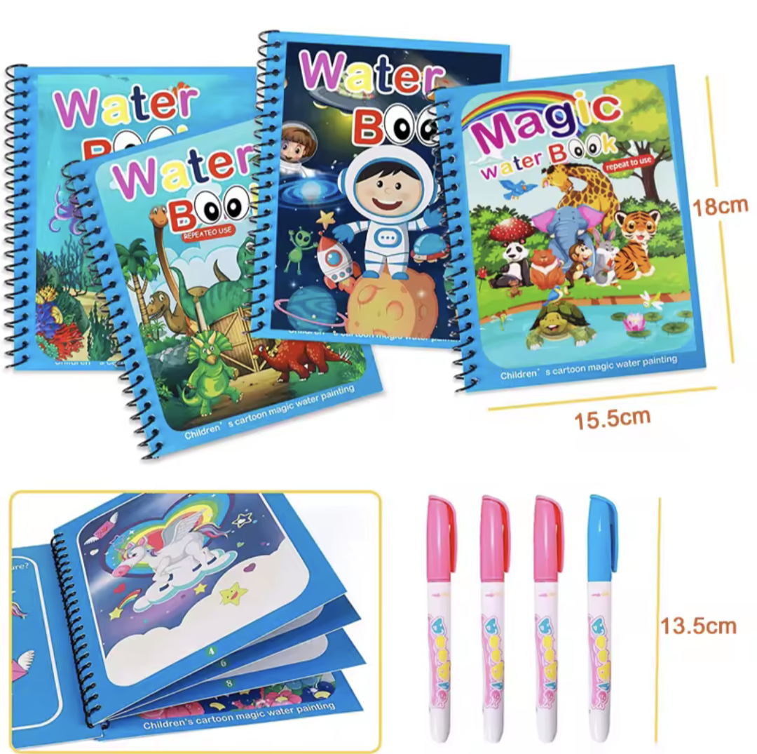 Let kids explore mess-free creativity with this reusable magic water coloring book! Designed for ages 2 to 4, it encourages learning, fine motor skills, and fun through colorful, water-activated pages. Perfect for travel and early education play.