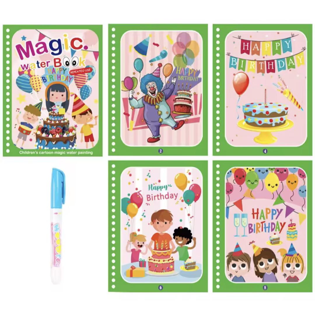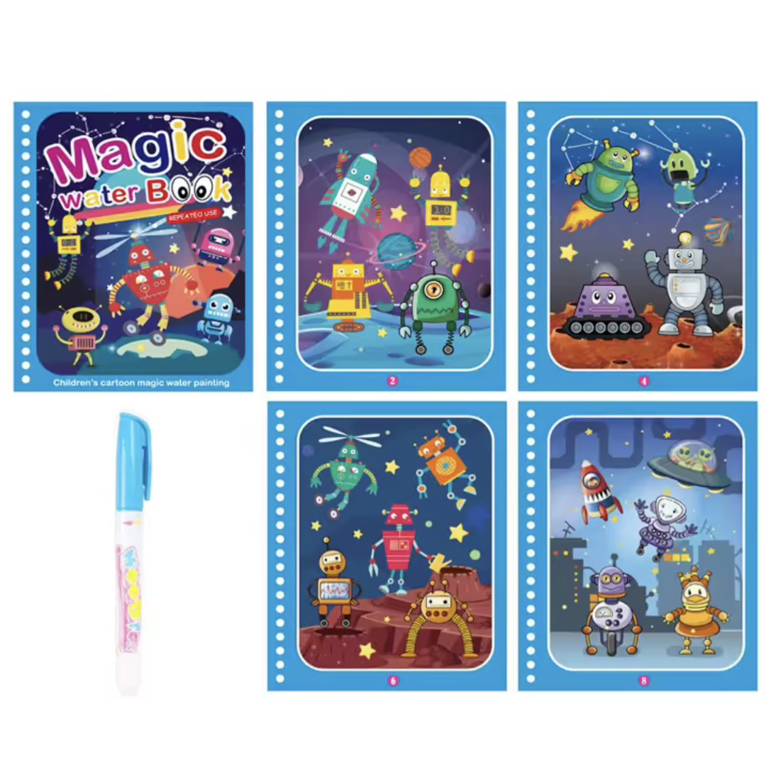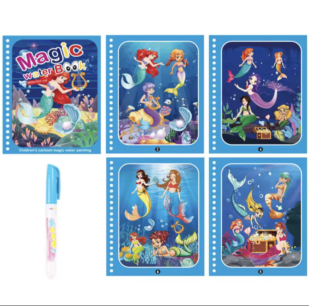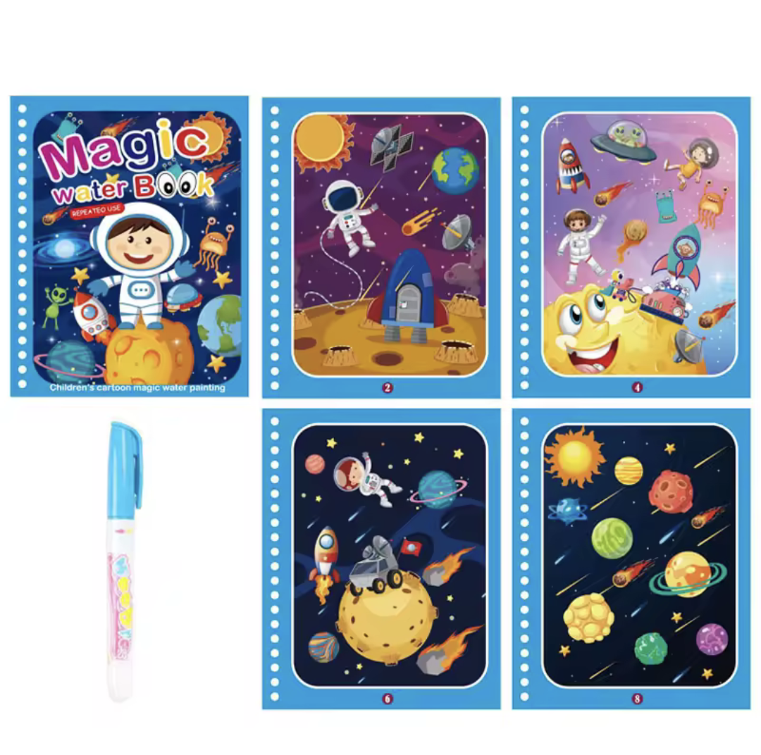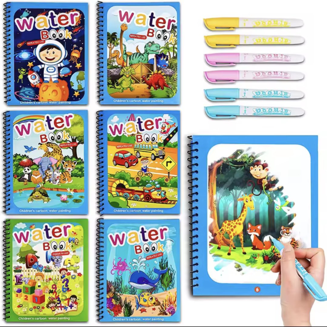 Let kids explore mess-free creativity with this reusable magic water coloring book! Designed for ages 2 to 4, it encourages learning, fine motor skills, and fun through colorful, water-activated pages. Perfect for travel and early education play.