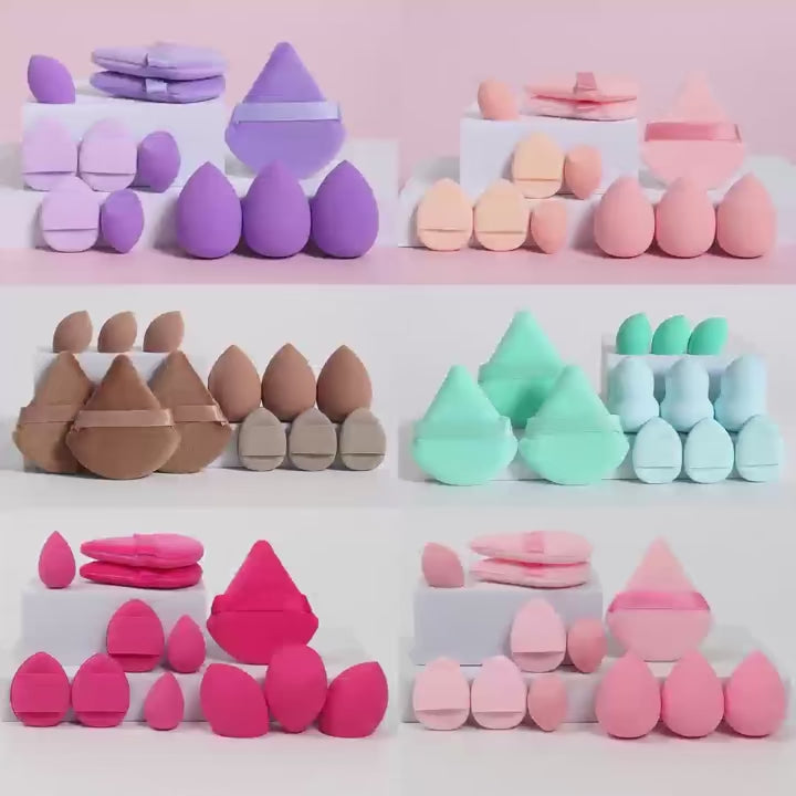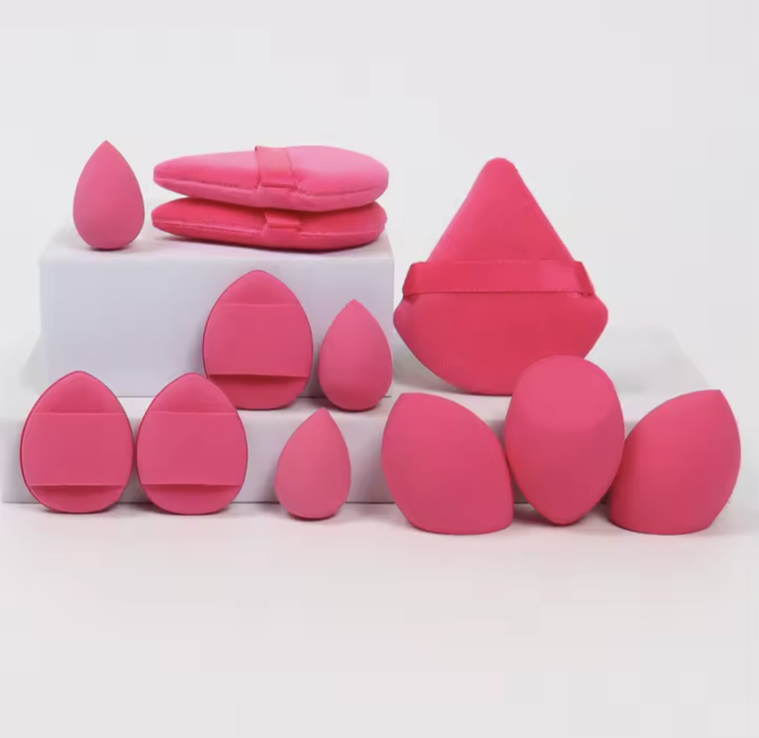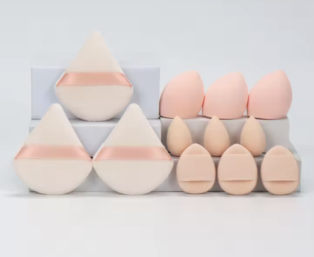 Get flawless makeup every time with this 12-piece all-in-one sponge set! Includes 3 powder puffs, 3 mini cushion puffs, 3 beauty eggs, and 3 mini sponges—perfect for blending, setting, and touch-ups. Soft, durable, and skin-friendly, this set is a must-have for smooth, airbrushed looks.
