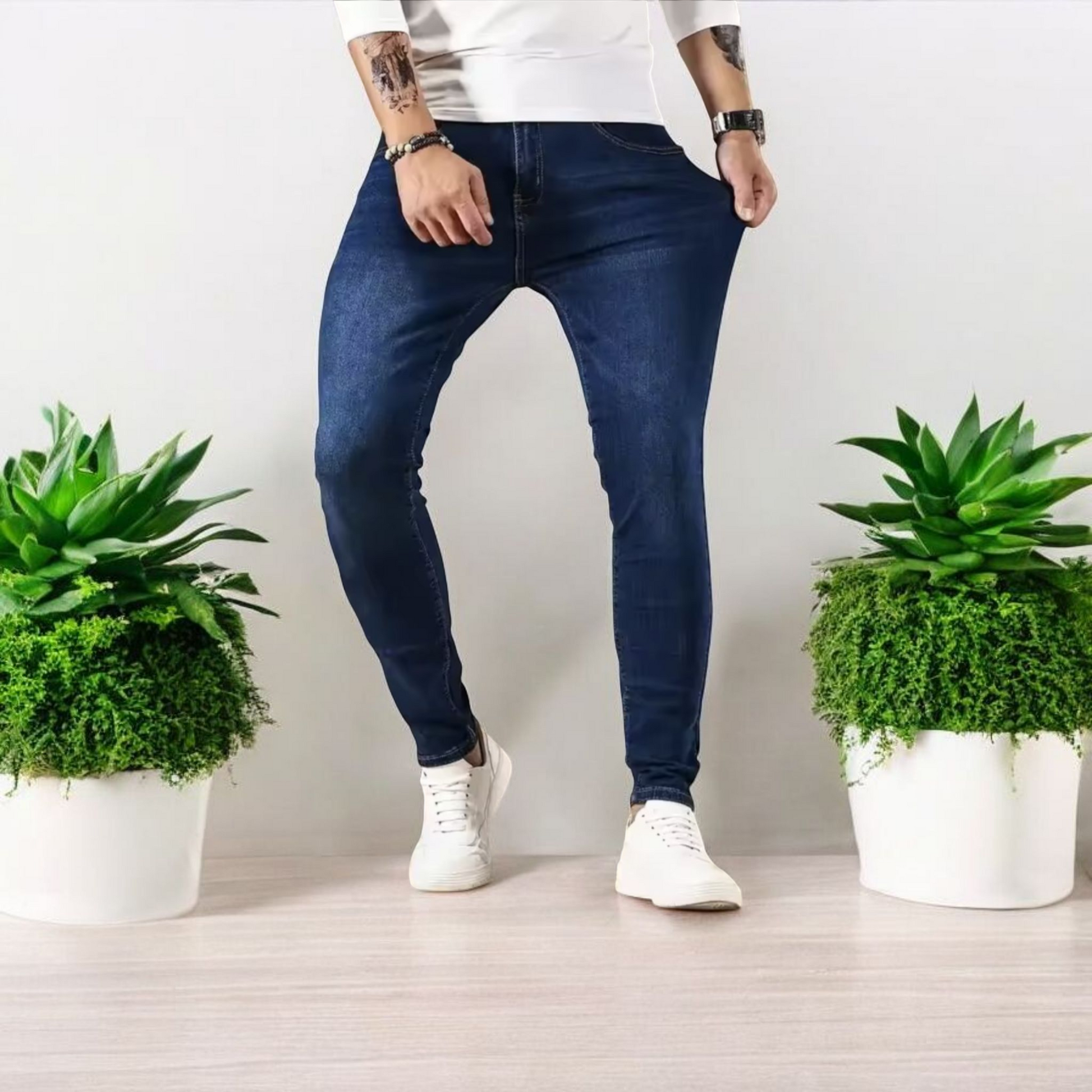 Step out in style with these slim-fit skinny jeans for men.