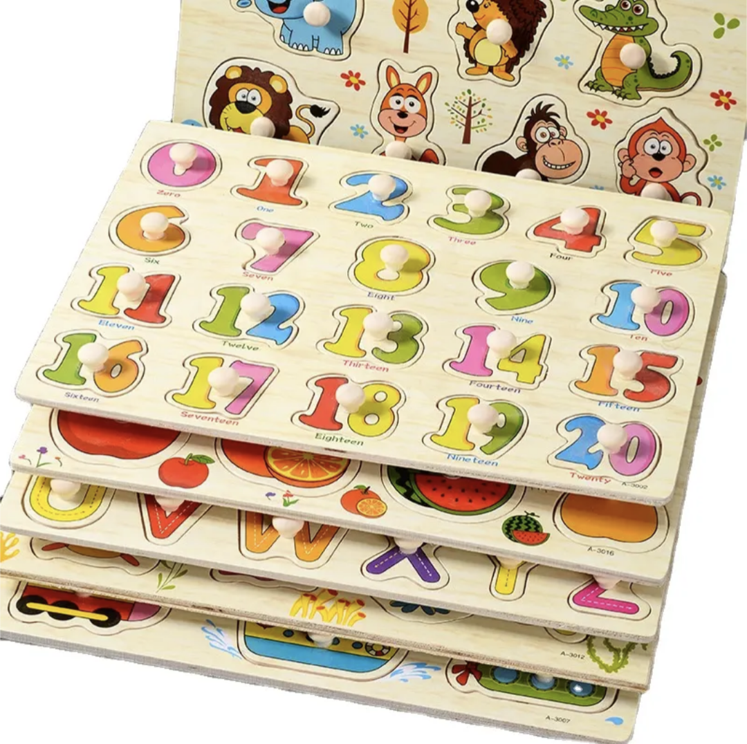 Boost your child's learning with these fun and colorful Montessori wooden puzzles! Perfect for developing hand-eye coordination, problem-solving, and fine motor skills.