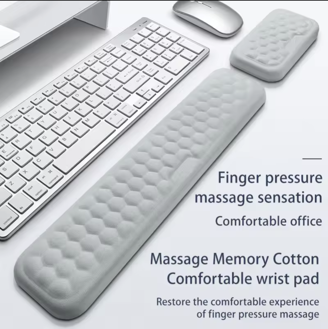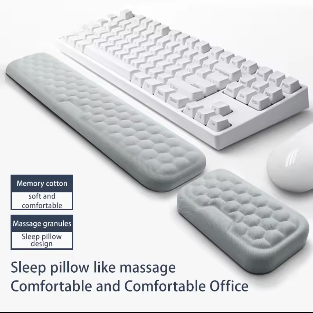 Work comfortably with this memory foam wrist support set. Designed to reduce strain while typing or using a mouse, it’s perfect for office, home, or gaming setups—soft, supportive, and built for all-day use.