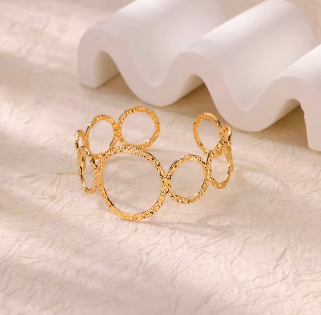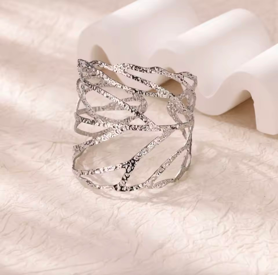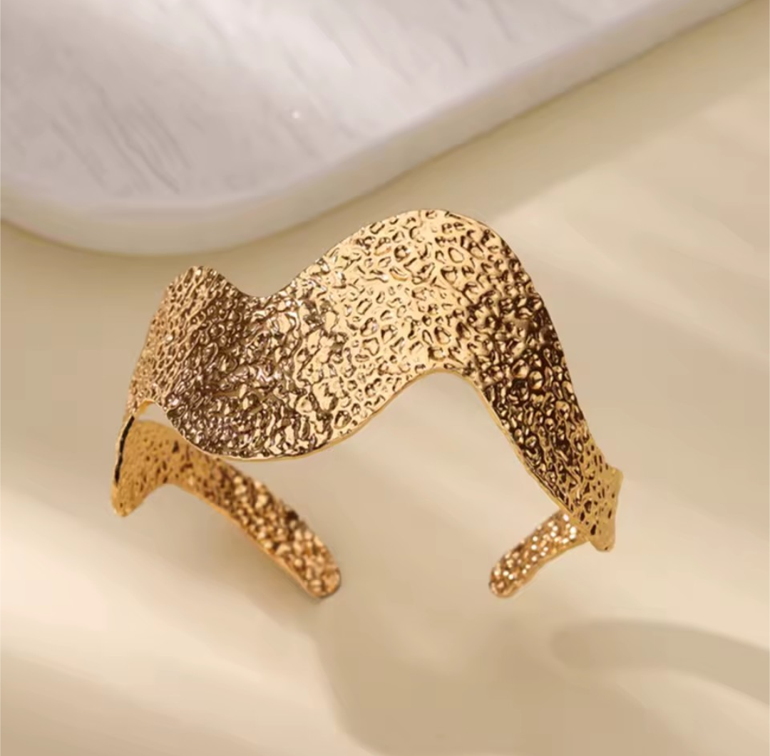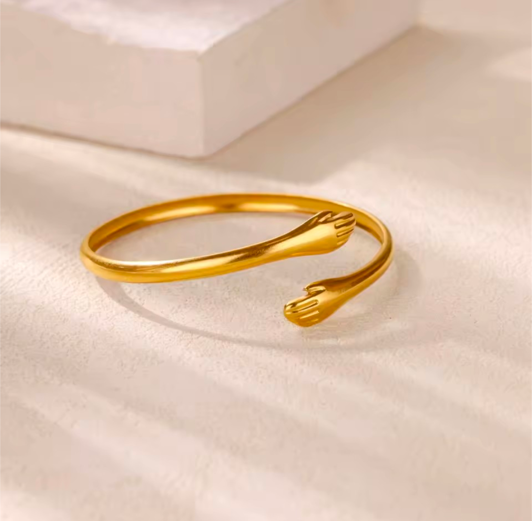 Aesthetic stainless steel bracelet with flower & leaf design. Open, adjustable, lightweight, and perfect for daily wear or gifting.