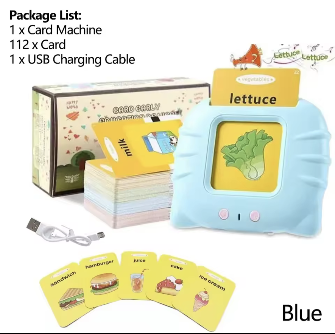 Our card learning machine is very suitable for children aged 6+y. This learning machine can insert cards. When you insert this card, the learning machine will say the words printed in this card.