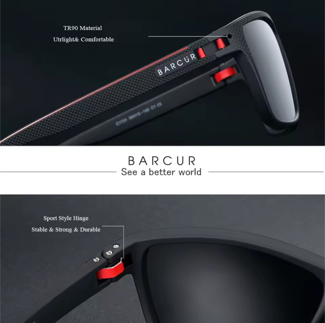 Experience comfort, performance, and modern style with BARCUR Design TR90 Sunglasses. Made with a lightweight and flexible TR90 frame, these sunglasses are built for all-day wear without pressure. The polarized lenses effectively reduce glare and improve visual clarity, while UV400 UVAB protection keeps your eyes safe from harmful sun rays. Ideal for sports, driving, cycling, travel, and everyday outdoor activities, these sunglasses suit both men and women.
